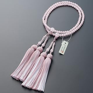 仏壇屋 滝田商店 数珠 八宗用(八宗兼用) 本式数珠 【女性用】紅水晶(ローズクオーツ) 8寸 正絹頭付房◆京念珠・すべての宗派で使える本式数珠【滝田商店発行 京念珠製造師製作証明書付】