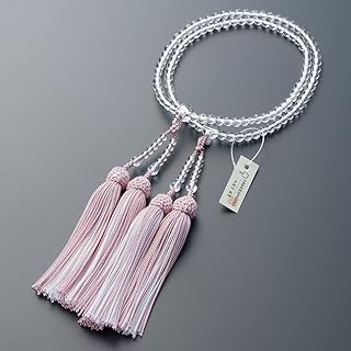 仏壇屋 滝田商店 数珠 八宗用(八宗兼用) 本式数珠 【女性用】本水晶 8寸 正絹頭付房 (2色房)(灰桜色/白色)◆京念珠・すべての宗派で使える本式数珠【滝田商店発行 京念珠製造師製作証明書付】