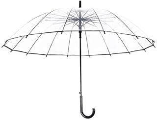 長傘 透明傘 16本骨 耐風グラスファイバー骨 ビニール傘 透明の傘 大きい長傘 レディース 軽量 撥水 丈夫 (F,透明)