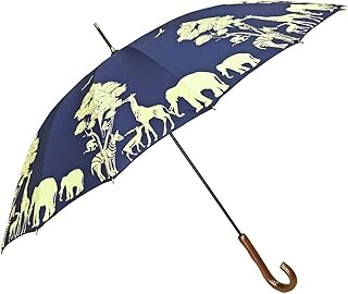 レディース 雨傘 長傘 手開き 16本骨 ゾウ・シマウマ・シカ・キリンのサファリ柄手開き雨傘