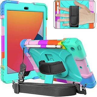 iPad 9世代 8世代 ケース iPad 7世代 ケース iPad 10.2 ケース 2020/2019/2020 保護フィルム SIBEITU 耐衝撃 衝撃吸収 スタンド ハンドストラップ 肩掛けー ショルダーストラップ 回転 頑丈 傷つけ防止 仕事用 防塵 ハード 子供 キッズ アイパッド 第七世代 10.2 カバー A2200 A2198 A2197