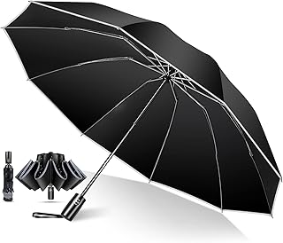 折りたたみ傘 メンズ 【最新昇級強化版・頑丈な12本骨・逆折り式】 折り畳み傘 ワンタッチ 自動開閉 高強度アルミ合金傘骨 反射テープ付き 超撥水 紫外線遮蔽 UVカット 台風対応 梅雨対策 晴雨兼用 106cm超大サイズ 収納ポーチ付き
