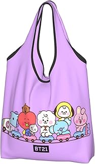 防弾少年団 Bt21 エコバッグ 大容量折りたたみエコバッグ買い物袋 人気軽量防水ショッピングバッグおしゃれレディースメンズ多機能トートバッグレジ袋 コンパクトコンビニバッグ買い物バッグ64cm×38cm